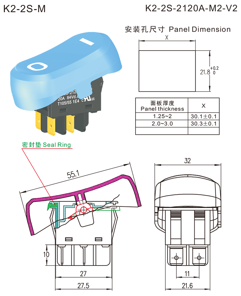 K2-2S series (Dustproof and Waterproof) High Rated Rocker Switches