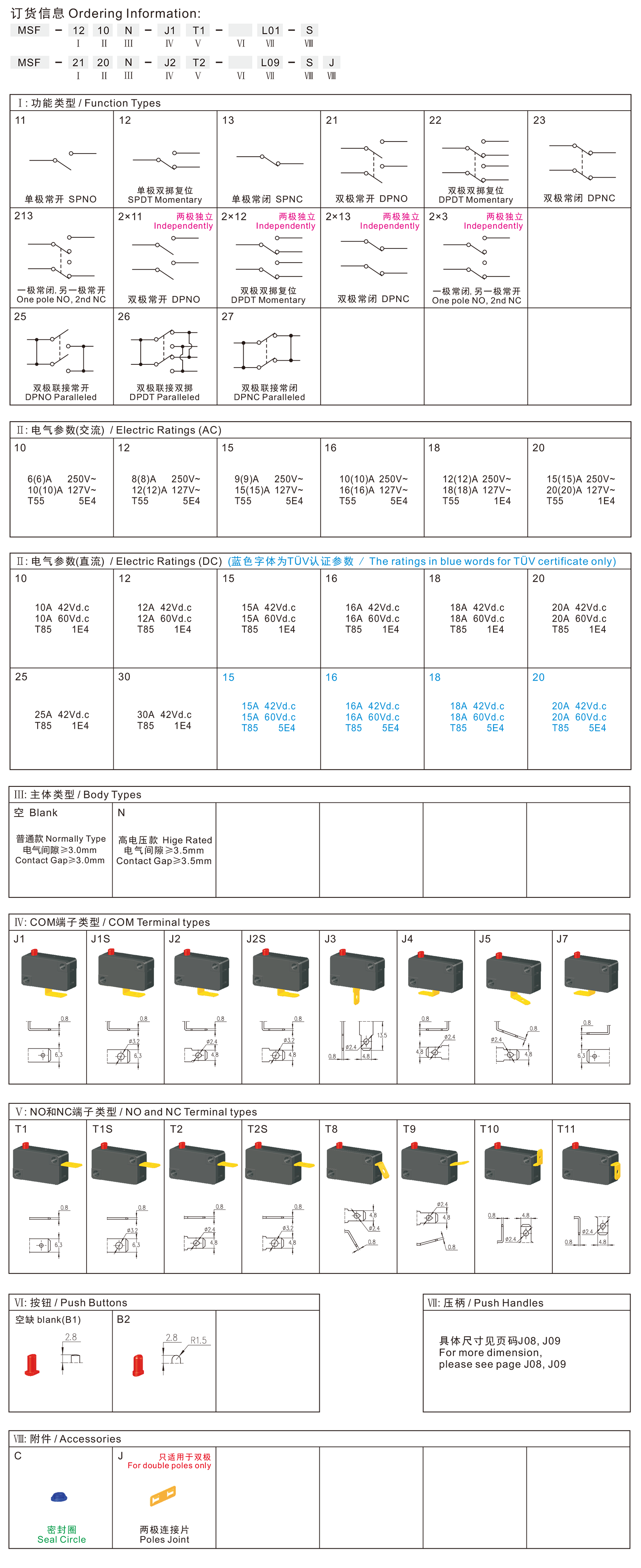 ◆MSF series are one standard micro switches, contact gap≥3.0mm, optional with Seal Ring for dustproof, the voltage up to 60Vd.c, specially for used in high rated DC power-tools and DC gardening tools,such as 18V up DC Angle Grinders, 18V up DC Grass Trimmers, 18V up DC Electric Chain Saws, 18V up DC Blowers, 18V up DC Hedge Trimmers, 18V up DC Multi-head Tools, etc.