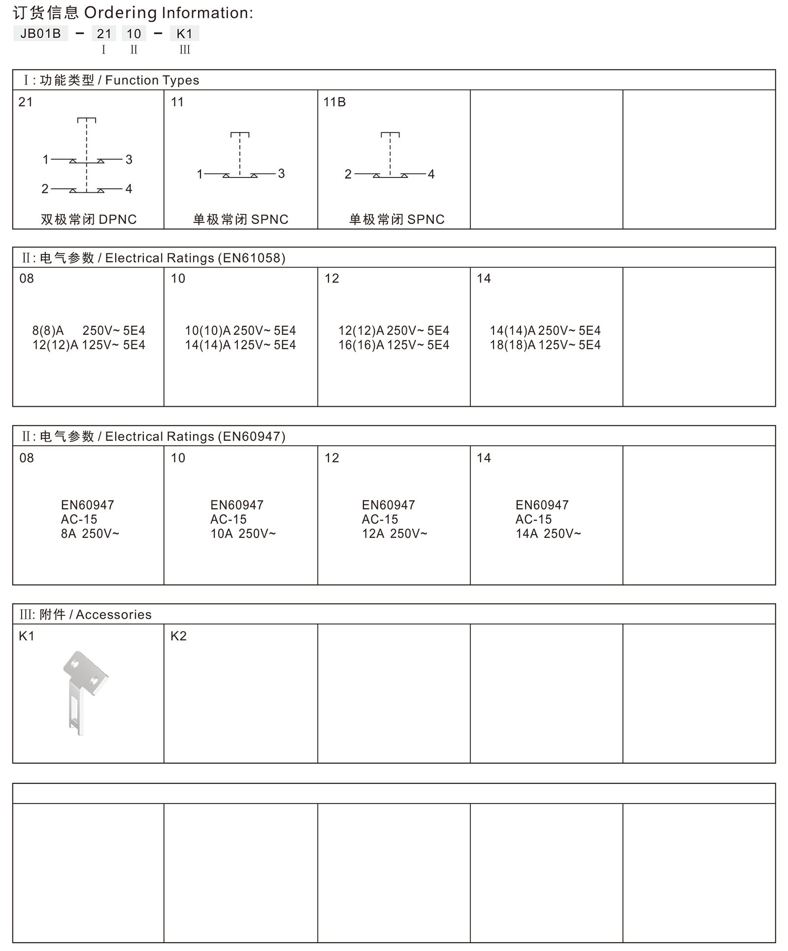 ◆JB01系列是一款大電流的安全限位開關(guān),集成防塵防水功能,JB010B為迷你款,適用于各類臺式電動工具和園林工具,如:臺式推拉鋸、臺式圓鋸、臺式刨床、臺式銑床、臺式車床、臺式線鋸、臺式鉆床和家用碎枝機等。