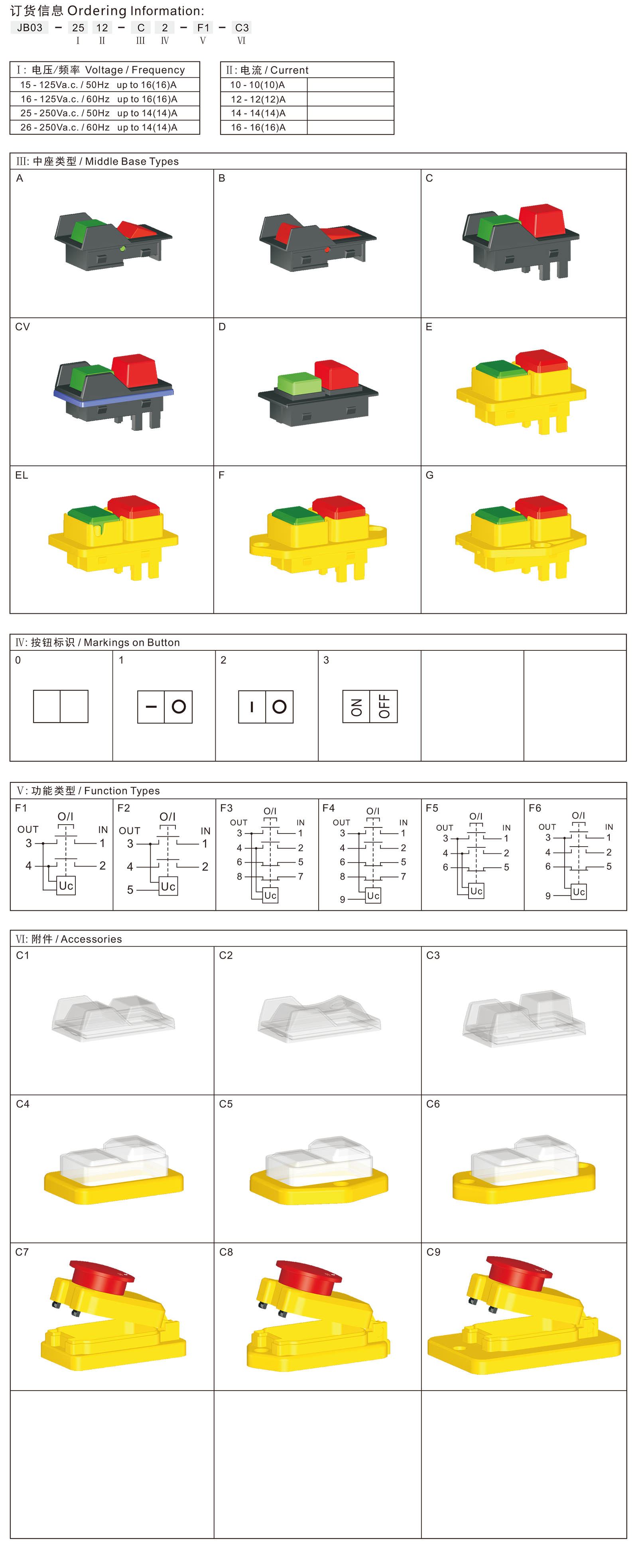 JB03 series are one standard electromagnetism switches, integrated dustproof and waterproof when employ Protection Cap, for use in bench top power-tools and gardening tools such as: Bench Push-pull Saws, Bench Circular Saws, Bench Planers, Bench Routers, Bench Lathes, Bench Scroll Saws, Bench Drill Presses, Bench Grinders, Domestic Shredders, etc.