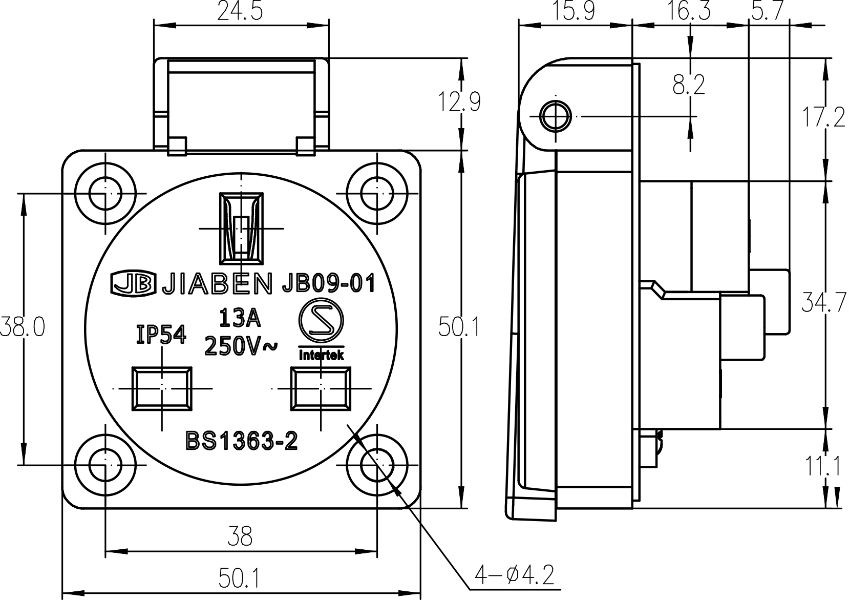 ◆JB09-01是一 款通用型的英式插座,集成防塵防水功能,應(yīng)用于干濕兩用吸塵器及各類臺式電動工具等。