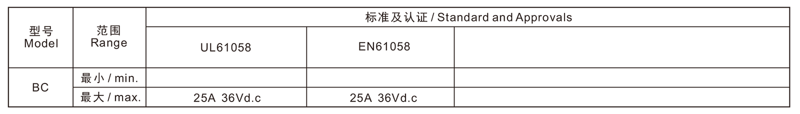 ≥1E4→最大電流 Max. current at 42Vd.c25A