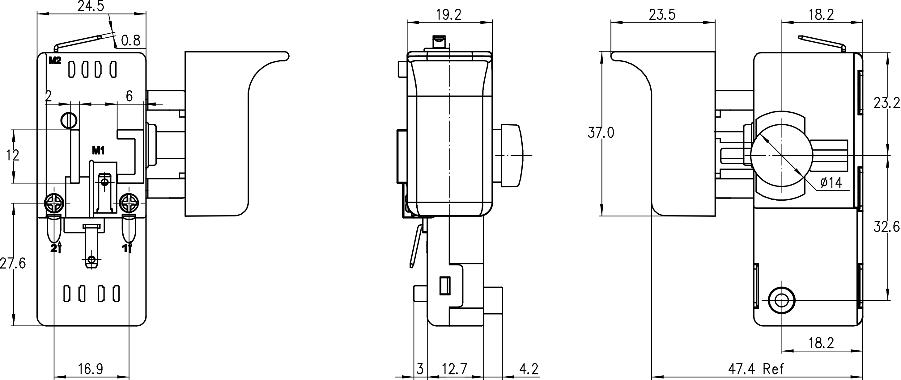 ◆JBF系列是一款專用型扳機電子調速開關,集成防塵功能,應用于各類手持式電動工具,如:電鉆、沖擊鉆、電錘、曲線鋸、往復鋸、馬刀鋸、攪拌器、拋光機和平板砂光機等。扳機、鎖鈕和撥桿可根據客戶要求進行定制。