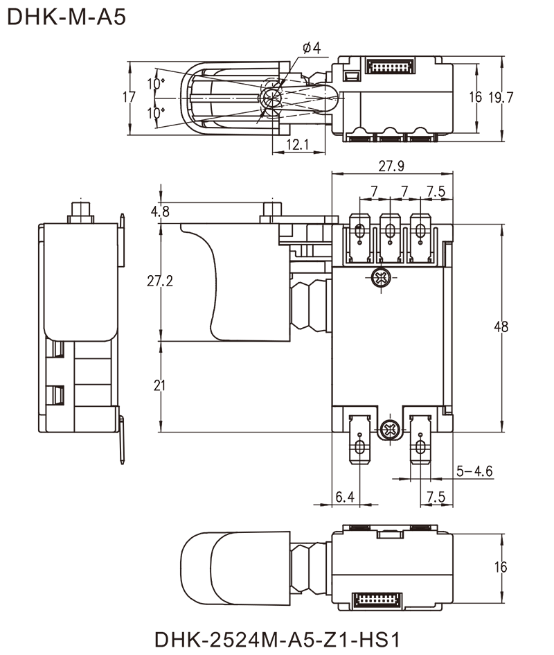 ◆DHK series are one special type DC compositive switches,specially design for Brushless DC motor, integrated dustproof and multi-function, optional with main contact or without, commonly for used in Brushless DC cordless portable power-tools such as: