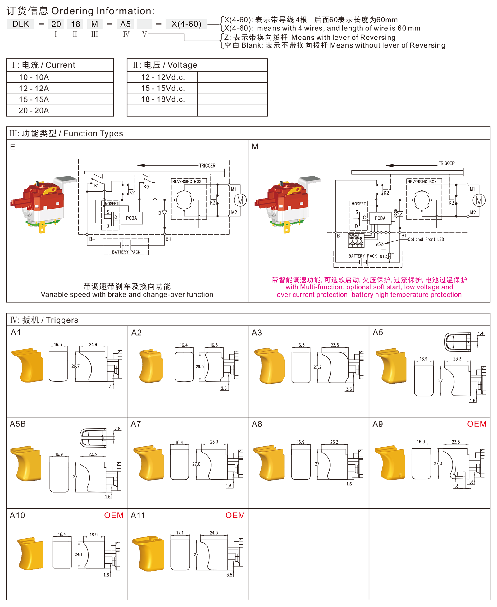 →智能調(diào)速功能,可選帶軟啟動、欠壓保護、過流保護、電池過溫保護等