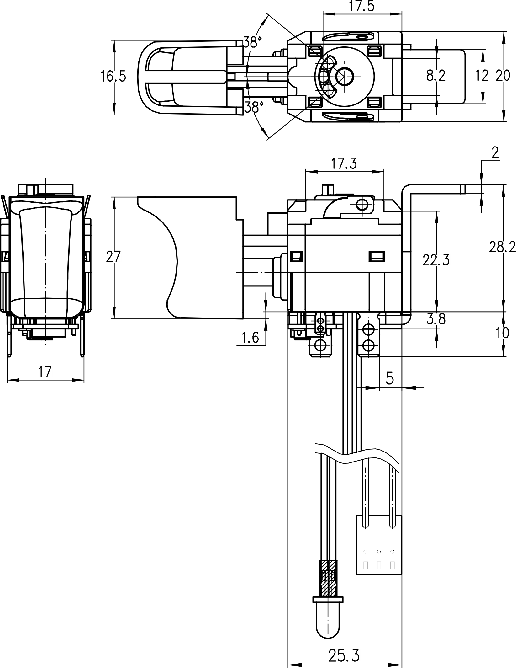 ◆本開關(guān)結(jié)構(gòu)緊湊,可選帶以下功能或附件: