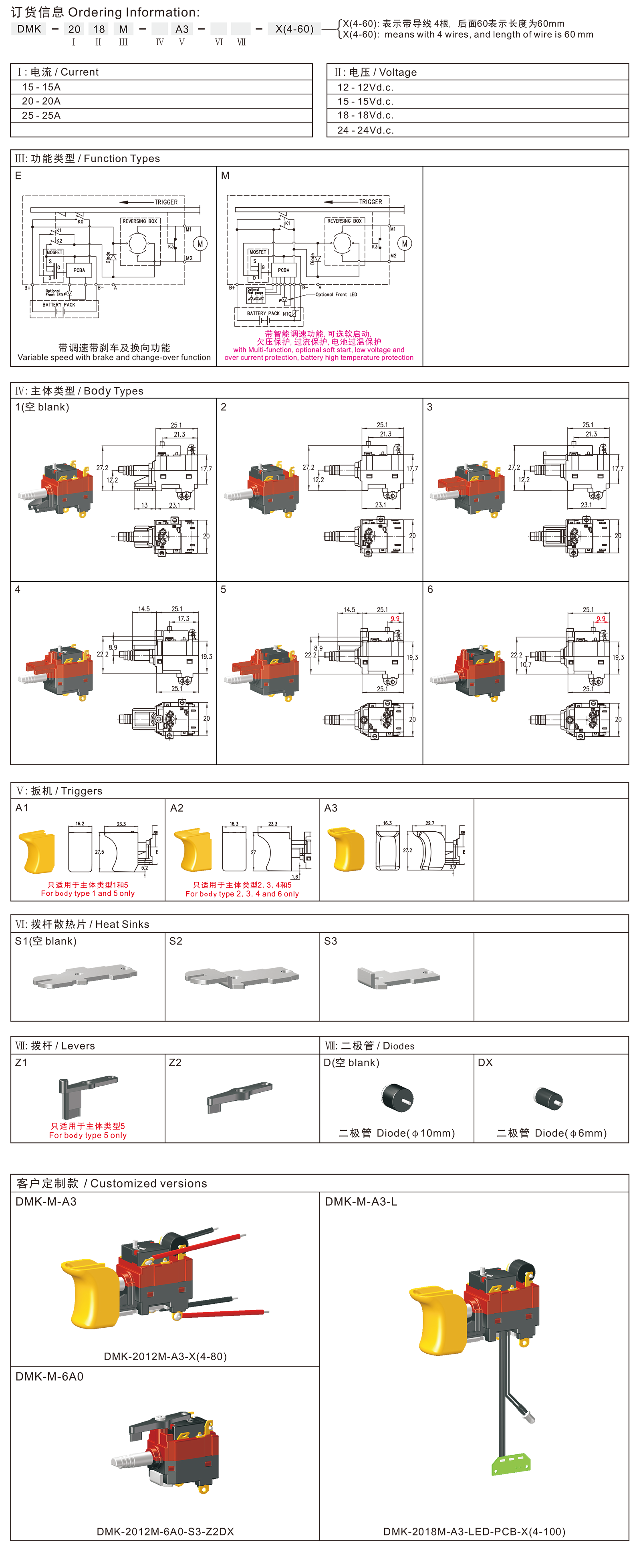 ◆本開關結構緊湊,可選帶以下功能或附件: