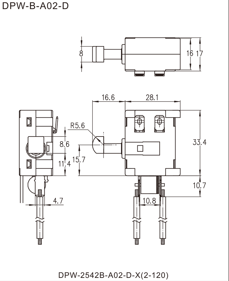 ◆DPW系列是一款通用型的直流扳機開關,集成防塵和快速剎車接點,應用于需要快速剎車的直流充電式手持電動工具,如:充電式電圓鋸、充電式往復鋸、充電式電鏈鋸等。 ◆DPW series are general type DC trigger switches, integrated dustproof, with snap action brake contact, specially for used in DC cordless portable power-tools such as: Cordless Circular Saws, Cordless Reciprocating Saws, Cordless Chain Saws, etc.