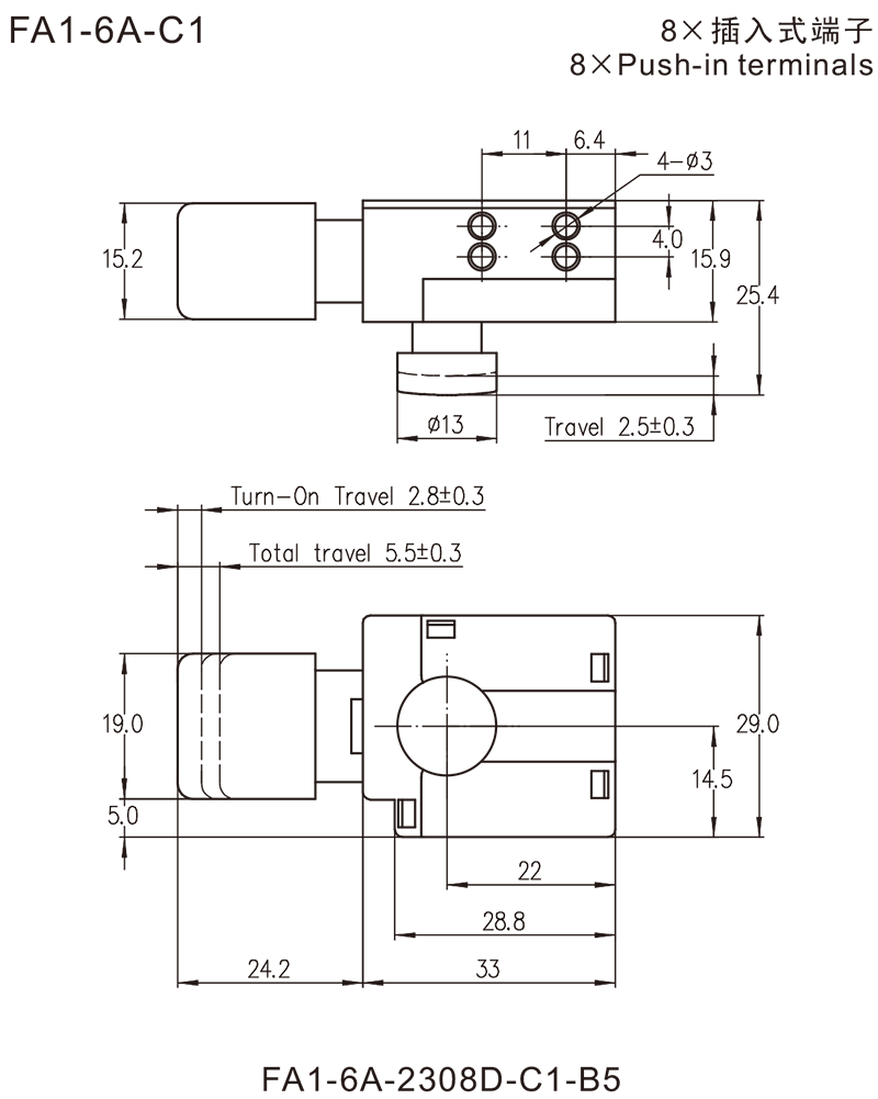 →2×接線柱端子 Pillar terminals φ=2.6mm or 2.8mm