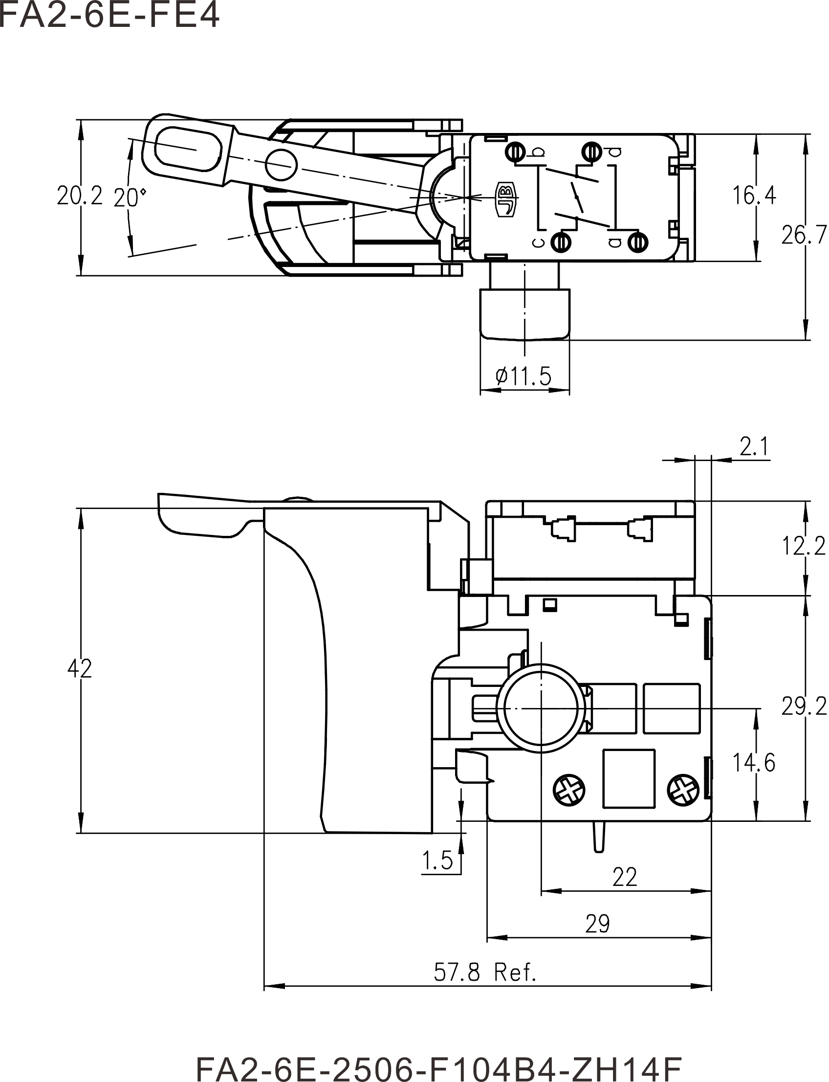 FA2-6E系列是一款通用型扳機電子調速開關,集成防塵功能,廣泛應用于各類手持式電動工具,如:電鉆、沖擊鉆、電錘、曲線鋸、往復鋸、攪拌器、拋光機和砂光機等。開關有多種換向盒可以選擇,扳機、鎖鈕和撥桿可根據客戶要求進行定制。