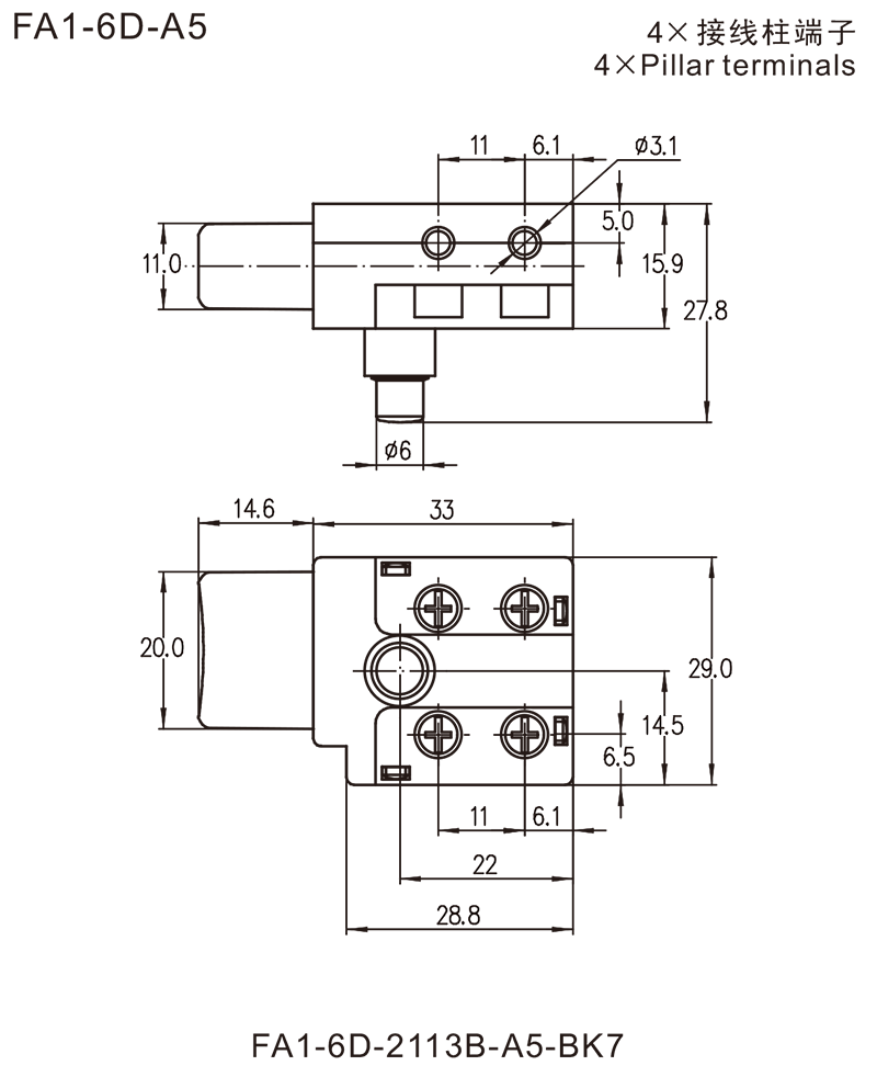 →2×接線柱端子Pillar terminalsφ=2.8mm