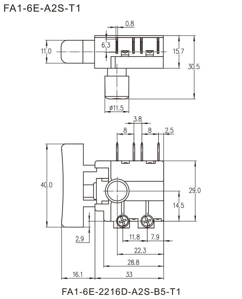 FA1-6E系列是一款通用型的扳機開關,集成防塵功能,內部為快速動作結構,廣泛應用于各類手持式電動工具,如:電鉆、電錘、往復鋸、曲線鋸、角向磨光機、攪拌器、型材切割機、石材切割機、電圓鋸、電木銑、砂帶機、砂光機、電刨、電動噴槍、電動釘槍,也可應用于電動園林工具,如:打草機、電鏈鋸、電動割草機、電動掃雪機等。