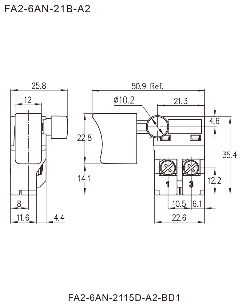 ◆FA2-6AN?series are one general type trigger switch, which is?dustproof improved version?of?FA2-6A?series, commonly for used in portable power tools and gerdening tools such as Electric Drills, Marble Cutters, Circular Saws, Electric Routers, Belt Sanders, Electric Planers, Electric Chain Saw, etc.
