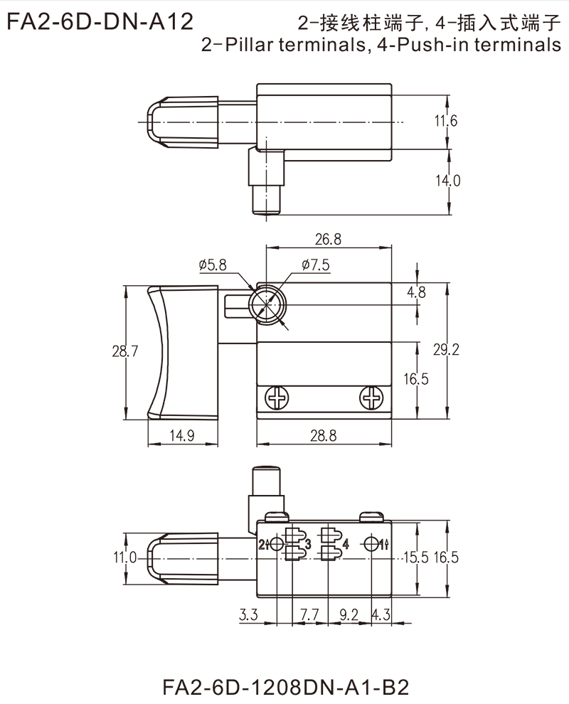 ◆FA2-6D, DX, DY?series are one general type trigger switch,?optional integrated dustproof version, commonly for used in power tools such as Marble Cutters, Circular Saws, Electric Hammers, Electric Routers, Belt Sanders, Belt Saws, Electric Planers, Electric Mixers, Electric Sprayers, etc.