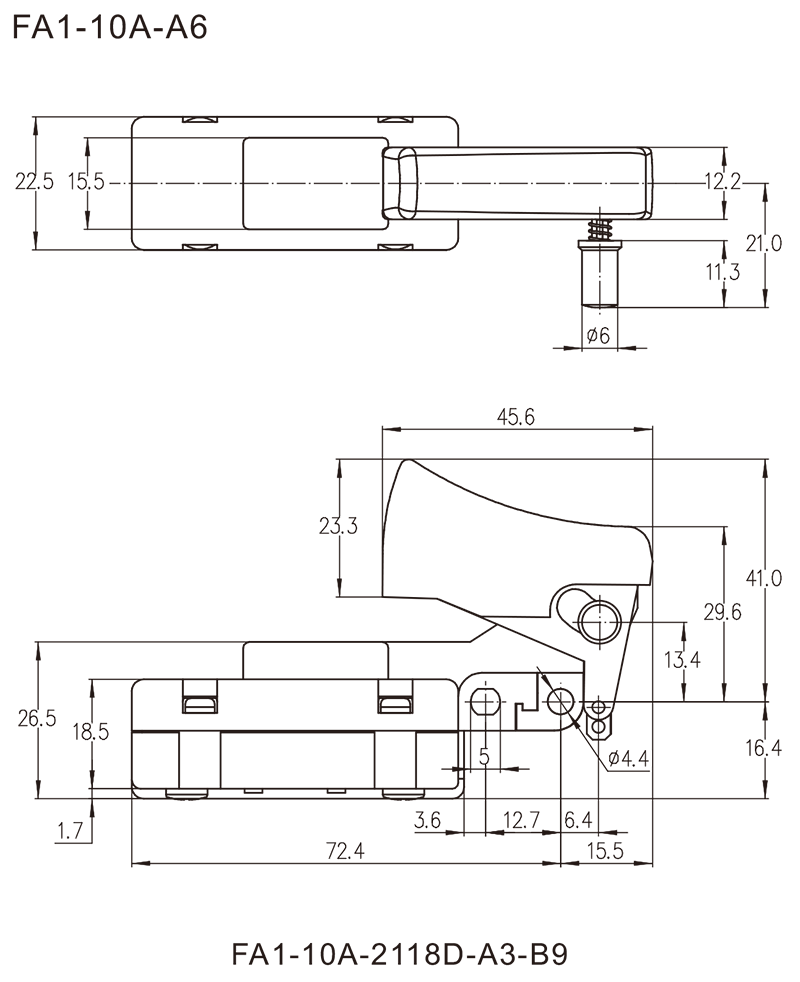 FA1-10A series are general type high rated trigger switches,integrated dustproofwith snap-action structure, for used in high rated bench top or portable power-tools such as Cut-off Machines,Miter Saws, 150mm, 180mm and 230mm Large Angle Grinders, Polishers, Circular Saws, Rotary Hammers, Demolition Hammers, Electrics Chain Saws, etc.
