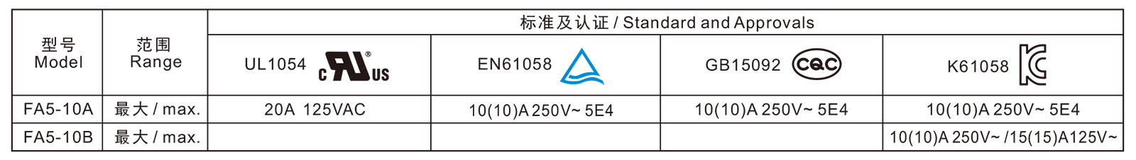 電氣參數(shù)和認(rèn)證 Electric Rating and Certification