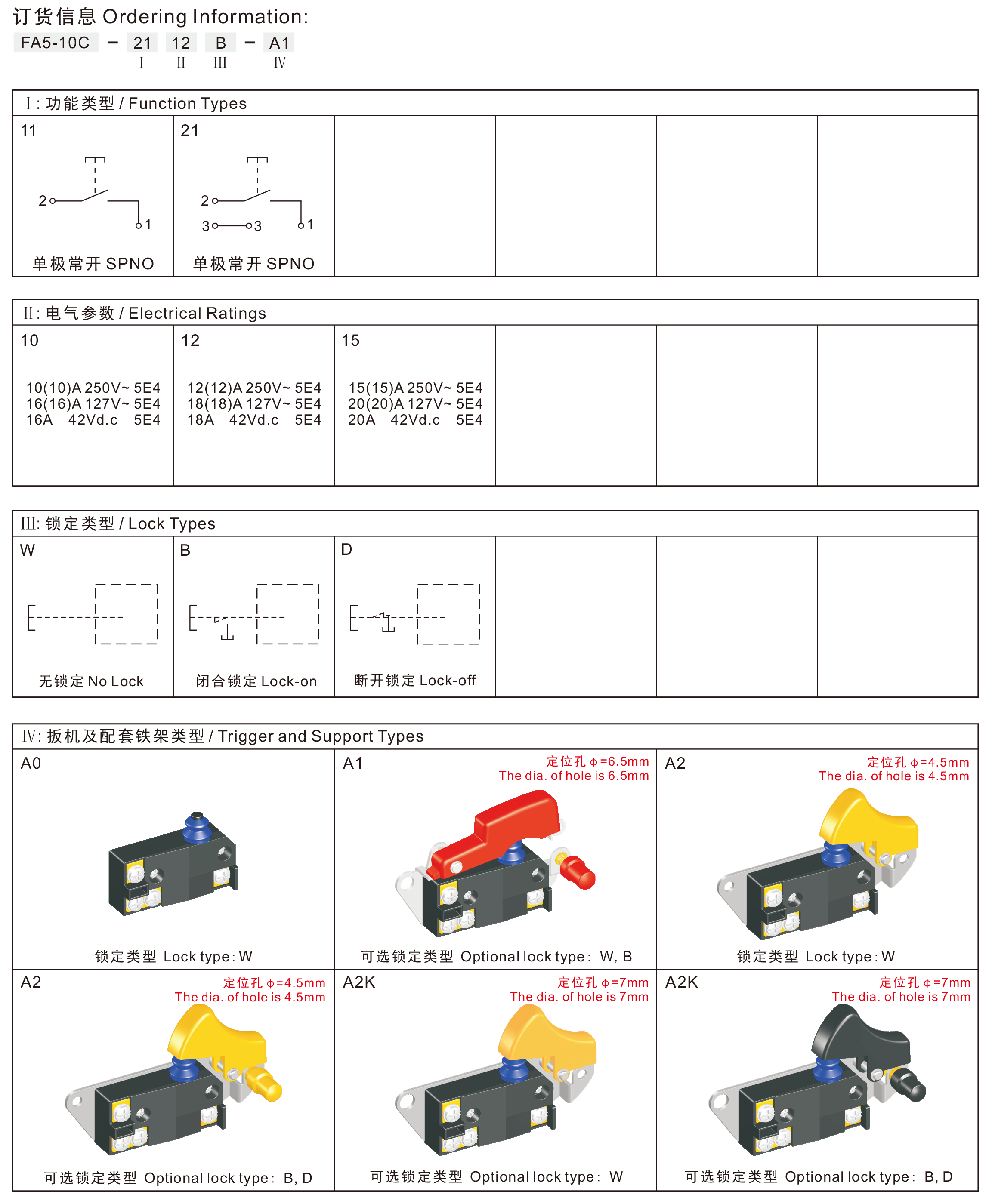 ◆FA5-10C?series are general type trigger switches,?integrated dustproof, for used in portable or bench top power-tools such as Cut-off Machines, Miter Saws, 125mm, 150mm and 180mm Angle Grinders, Circular Saws, Polishers, Rotary Hammers, Demolition Hammers, Electric Chain?Saws, etc.