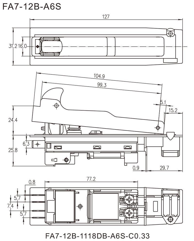 FA7-12B系列是一款專用型的大電流扳機開關,集成防塵功能內部為快速動作結構,適合大功率的電動工具,如:型材切割機、斜切鋸(介鋁機)、180和230大角磨、重型電錘、重型電鎬等。主體和扳機可按照客戶要求進行定制。