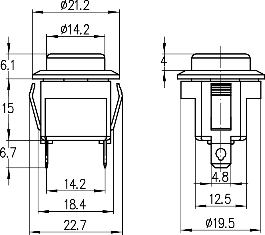 →插片端子 Plug-in terminals 4.8×0.8mm
