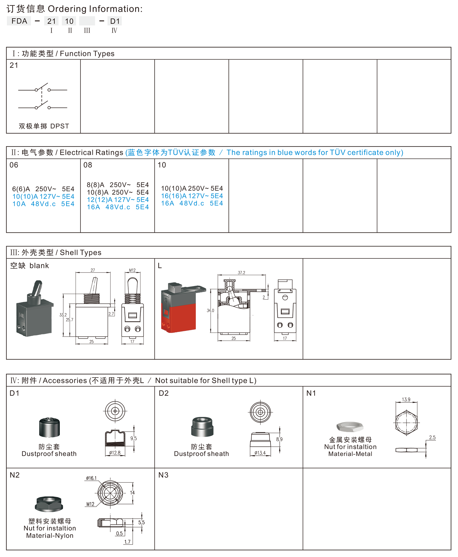 ◆FDA系列是一款專用型的倒扳開關,也叫搖桿開關或撥動開關,集成防塵功能,應用于各類電動工具,如:100和125角向磨光機、電木銑、模具電磨、電錘、電鎬等。