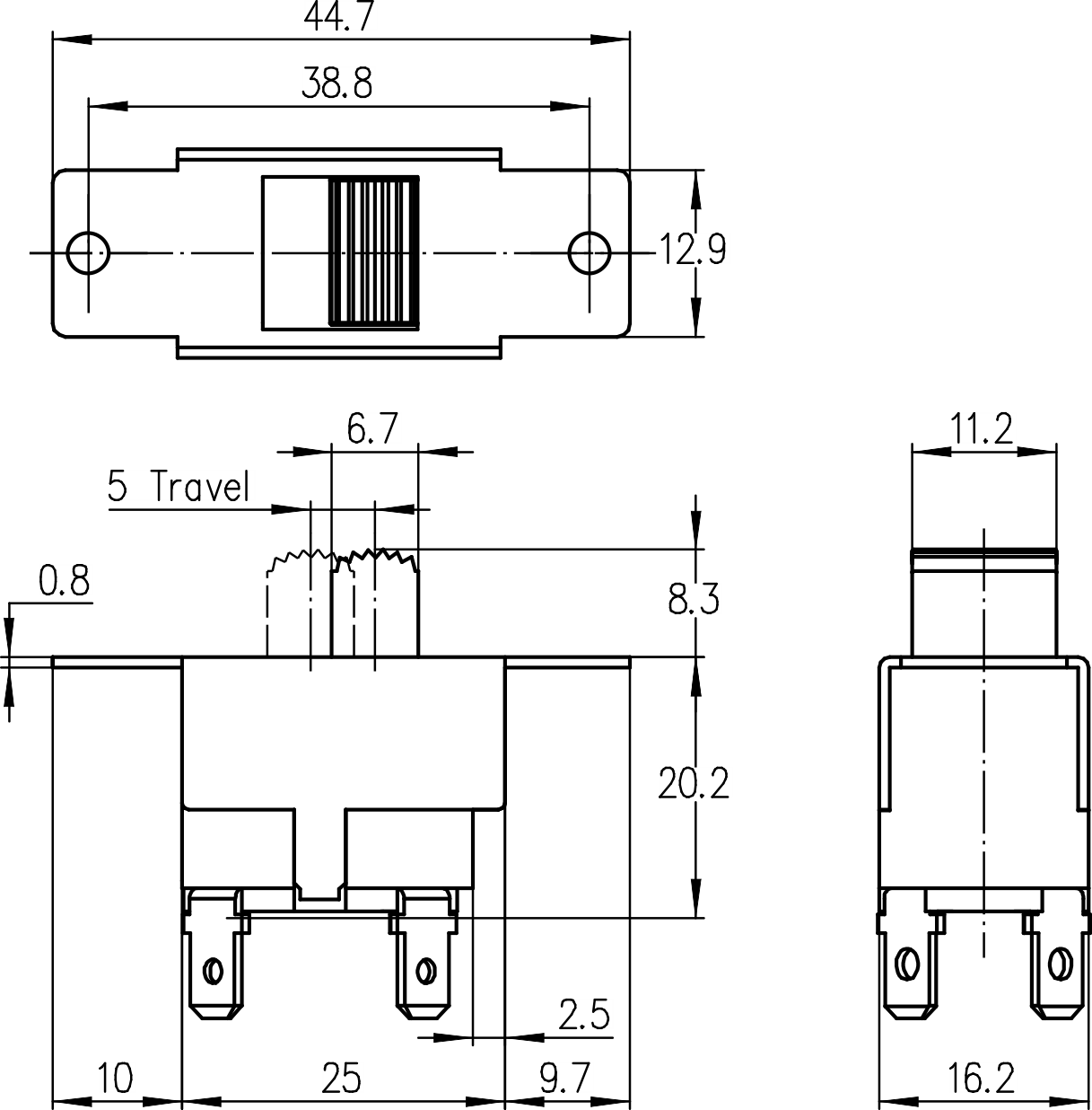 ◆FDD系列是一款專用型的滑動開關,也叫推拉開關或推撥開關,應用于各類電動工具和園林工具,如:電木銑、吹吸機等。 ◆FDD series are special type slide switches, for used in power-tools or gardening tools such as Routers, Blowers, etc.