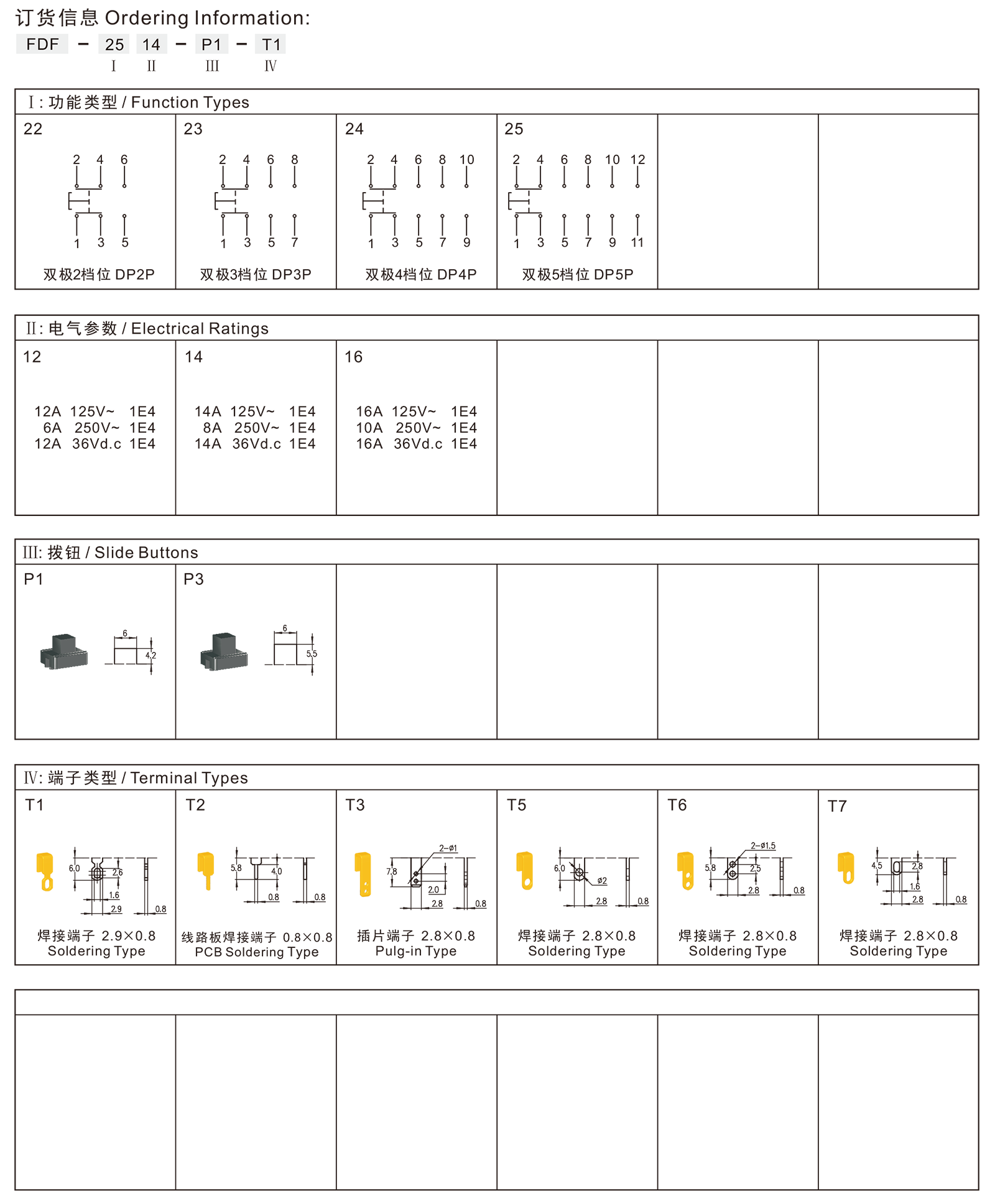 ◆FDF series are general type slide switches, commonly for used in power-tools and small home appliances such as Heat Guns, Blowers, Hair Dryers, Electric Fans, Electric Heating Apparatus, Cooking Machines, etc.