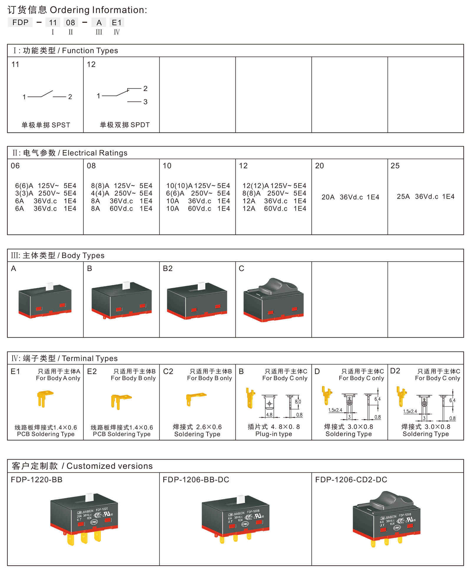 ◆FDP series are general type slide switches, commonly for used in power-tools such as 100mm and 125mm Angle Grinders, Multi-function Tools, etc.