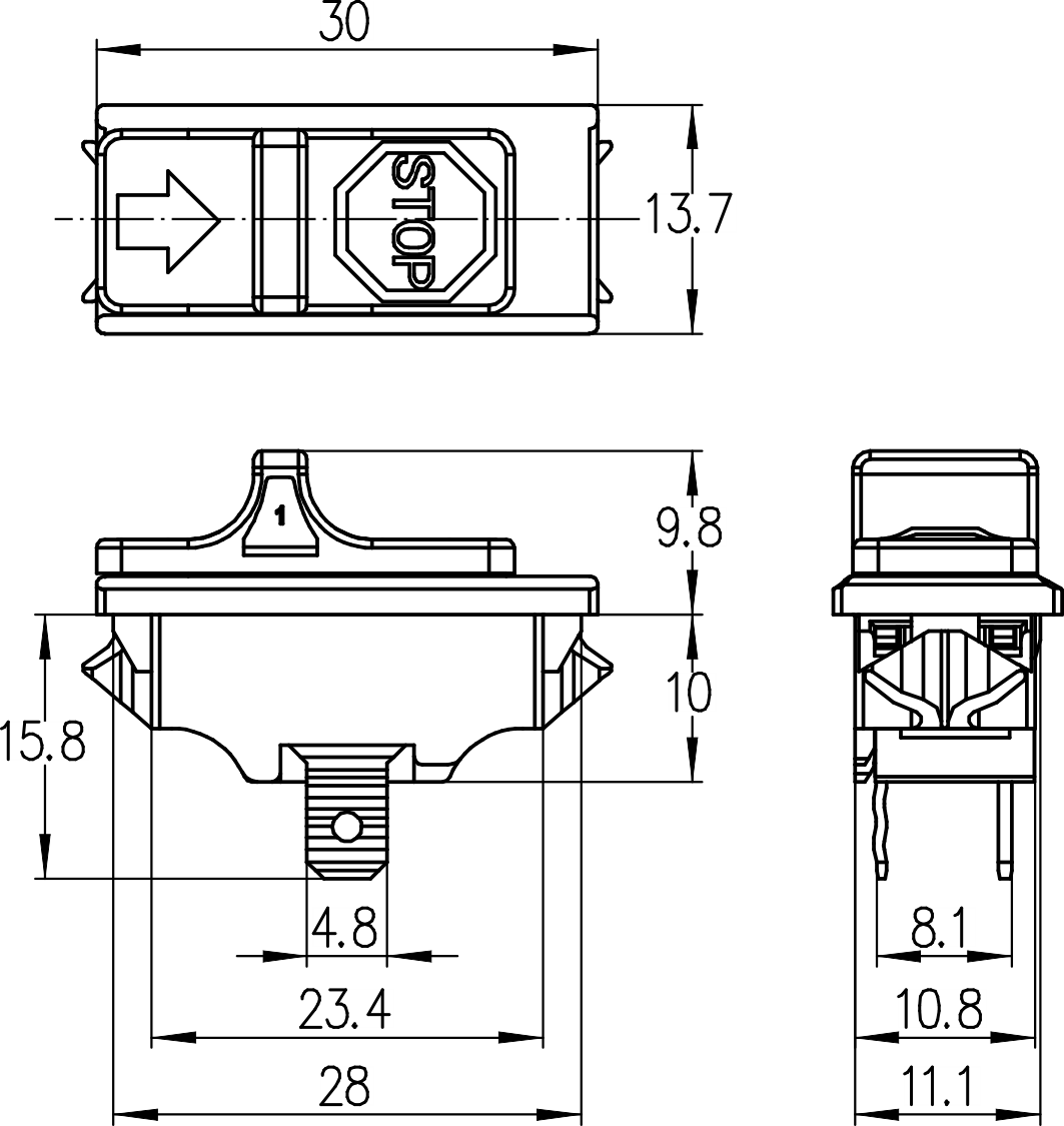 →單極單擲點動 Single Pole Single Throw with momentary act