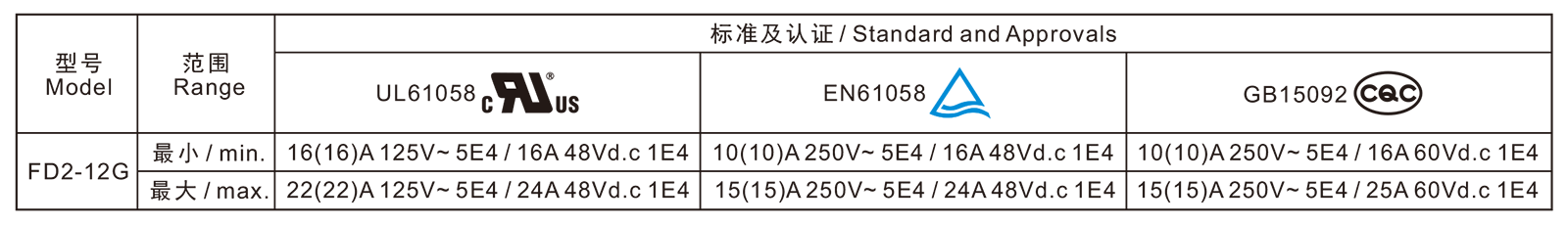 電氣參數(shù)和認(rèn)證 Electric Rating and Certification