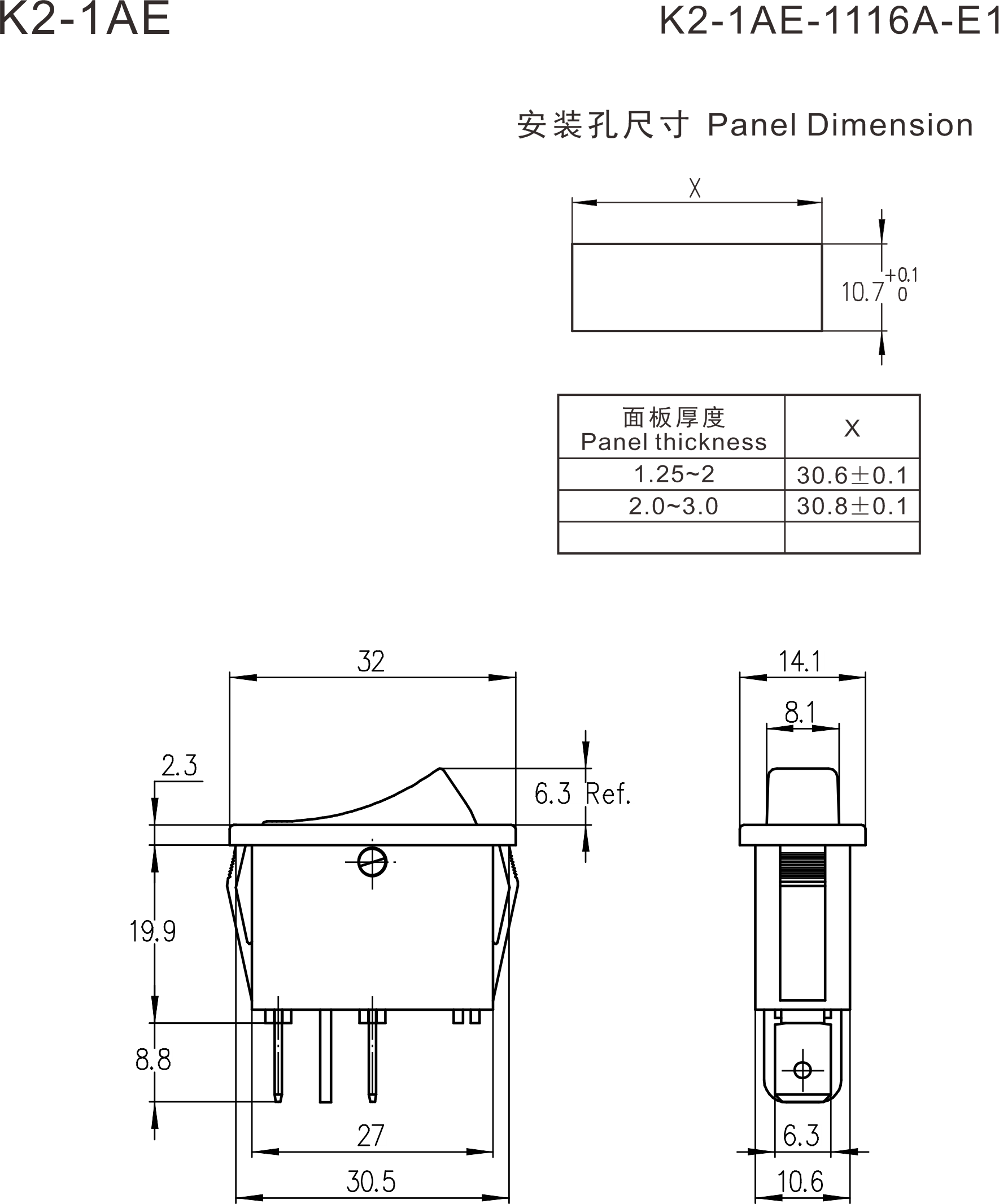 K2-1 series (Dustproof) Rocker Switches