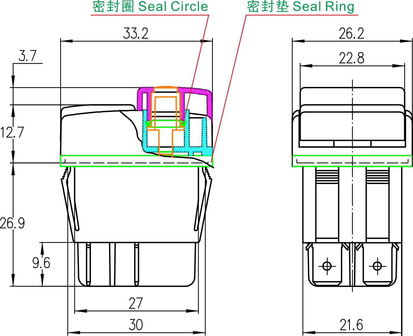 K2-2 series (Dustproof and Waterproof) Rocker Switches