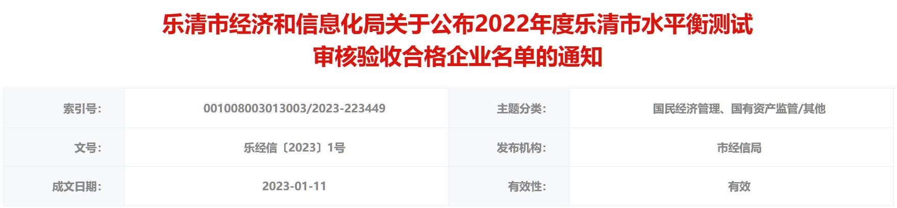 各有關企業: 為提高工業企業節水能力,加強節水管理,實施節水技術改造,推廣應用節水新技術、新工藝、新設備,加快淘汰落后工藝和設備,促進水資源節約和高效利用。根據《關于開展節水型企業建設工作的通知》(浙經信資源〔2017〕31號)文件要求,及2022年樂清市節水工作計劃安排,樂清市經濟和信息化局會同樂清市水利局在全市范圍內開展2022年度水平衡測試審核驗收工作。經企業自愿申報,經信、水利部門預審,并組織專家組審核驗收,浙江朗詩德健康飲水設備股份有限公司等9家企業水平衡測審核驗收